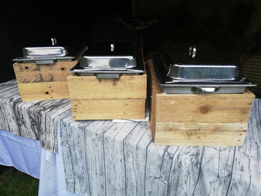 - We set up a buffet area with a minimum of 2 6ft trestle tables and have a 3m x 3m gazebo to serve the food under.